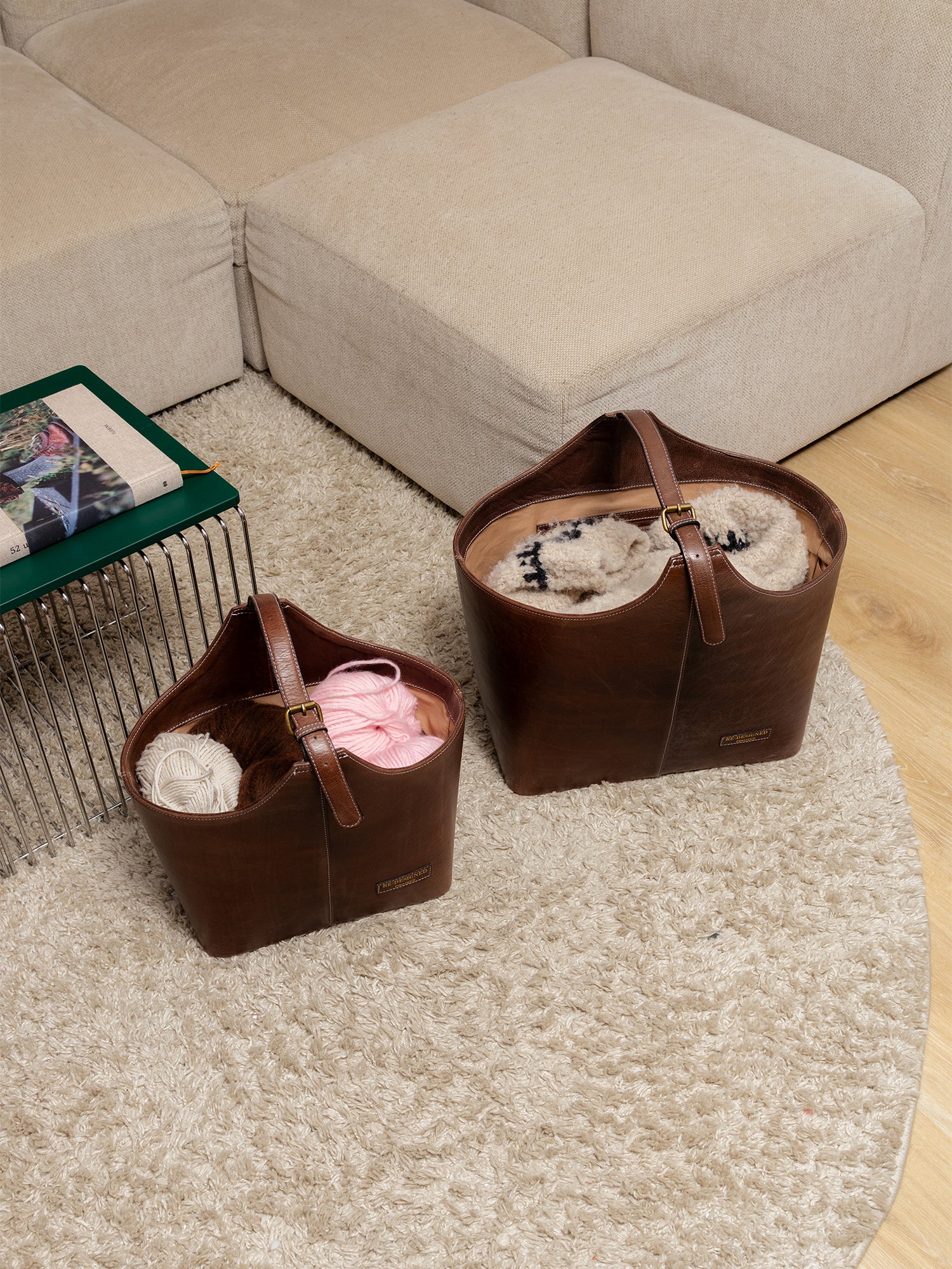 Fullkomin lausn til að halda garninu skipulögðu með stíl. Með reglulegri notkun á leðuráburði helst taskan falleg og endingargóð um ókomin ár.