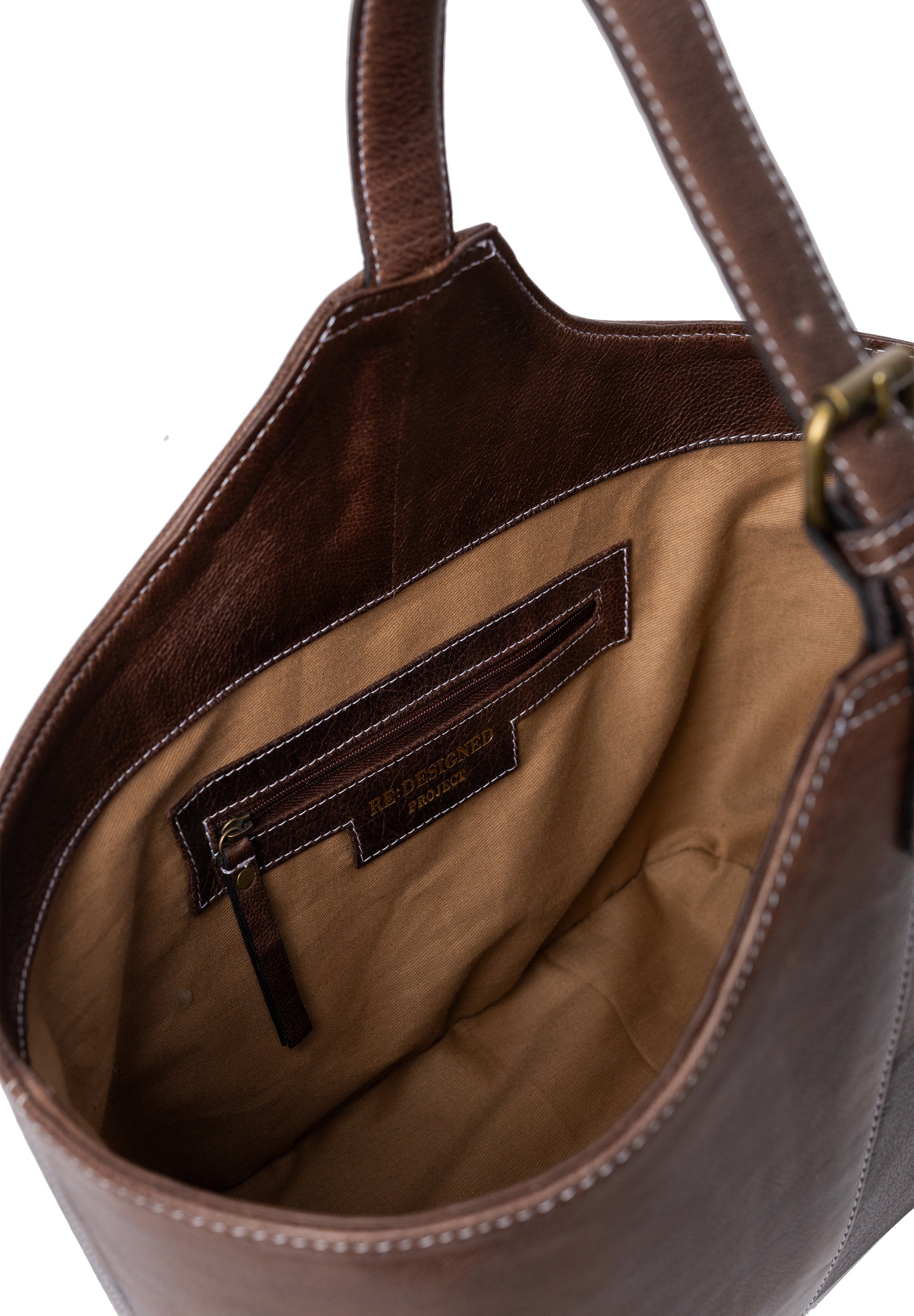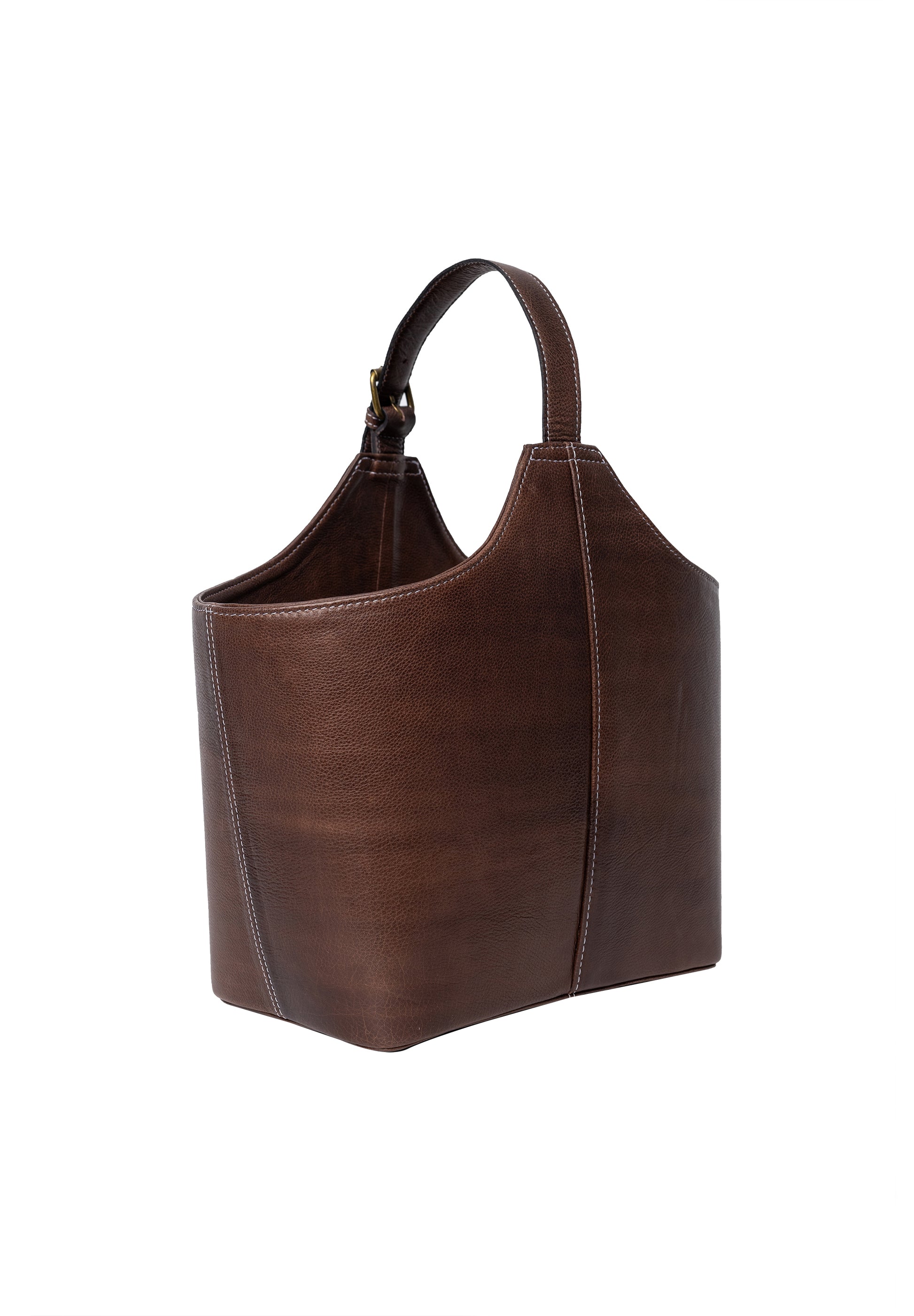 Leðrið er litað áður en það fær ljósvaxslokun sem undirstrikar náttúrulega áferð og einstakt útlit hverrar tösku.