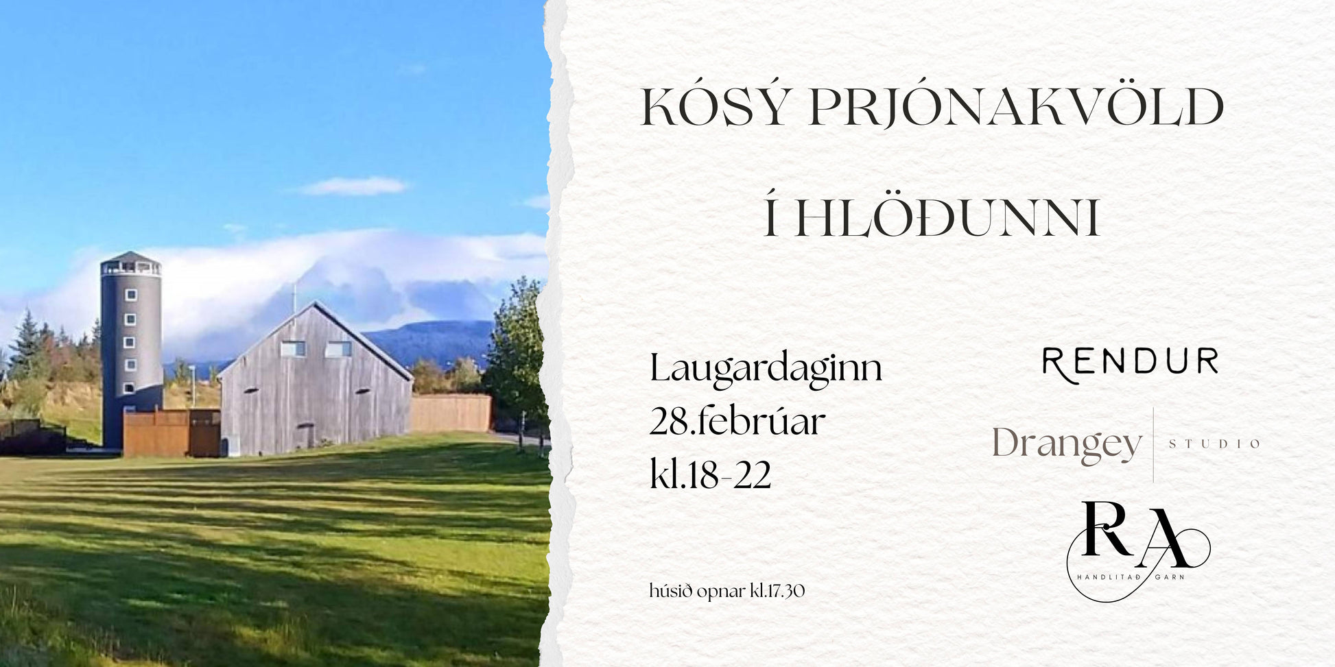 Við bjóðum þér á einstakt prjóna skemmtikvöld í Hlöðunni þar sem hlátur, samvera og skemmtun eru í fyrirrúmi.